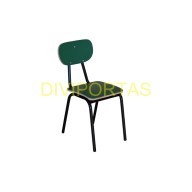 Silla Fija 4 patas, modelo 1004, asiento y respaldo en en madera terciada formicada en color a definir, estructura en caño de 7/8x0.90 pintado en pintura epoxi sin rejilla porta cuaderno.