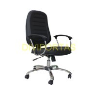 Silla Modelo Director, giratoria reclinable, con regulaje de altura con mecanismo a gas, base cromada, Linea Diviflex tapizado en tela u cuerina, con costura, espuma inyectada Dens. 45, Con apoya brazo cromado con apoyo inyectado en poliuretano de color negro.