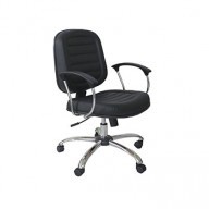 Silla Modelo Director, giratoria reclinable, con regulaje de altura con mecanismo a gas, base cromada, Linea Diviflex tapizado en tela u cuerina, con costura, espuma inyectada Dens. 45, Con apoya brazo cromado con apoyo inyectado en poliuretano de color negro.