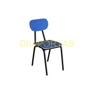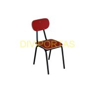 Silla Fija 4 patas, modelo 1004, asiento y respaldo en en madera terciada formicada en color a definir, estructura en caño de 7/8x0.90 pintado en pintura epoxi sin rejilla porta cuaderno.