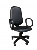 Silla Modelo Presidente, giratoria reclinable, con regulaje de altura con mecanismo a gas, Linea Diviflex tapizado en tela u cuerina, sin costura, espuma laminada Dens. 28, con apoya brazo inyectado en poliuretano de color negro.